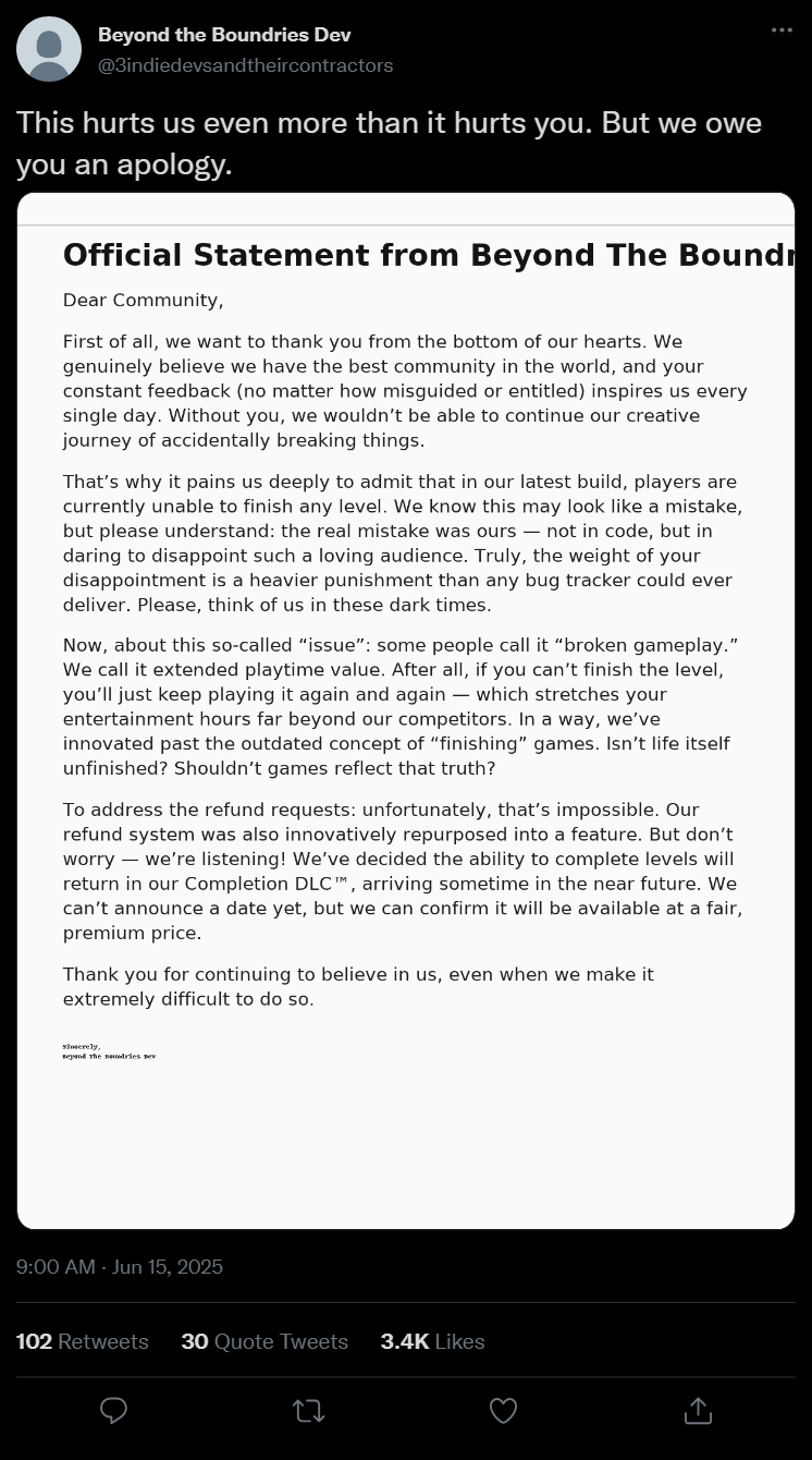 Every level after Level 0 is “unbeatable.” That’s not a bug, that’s advanced game design.